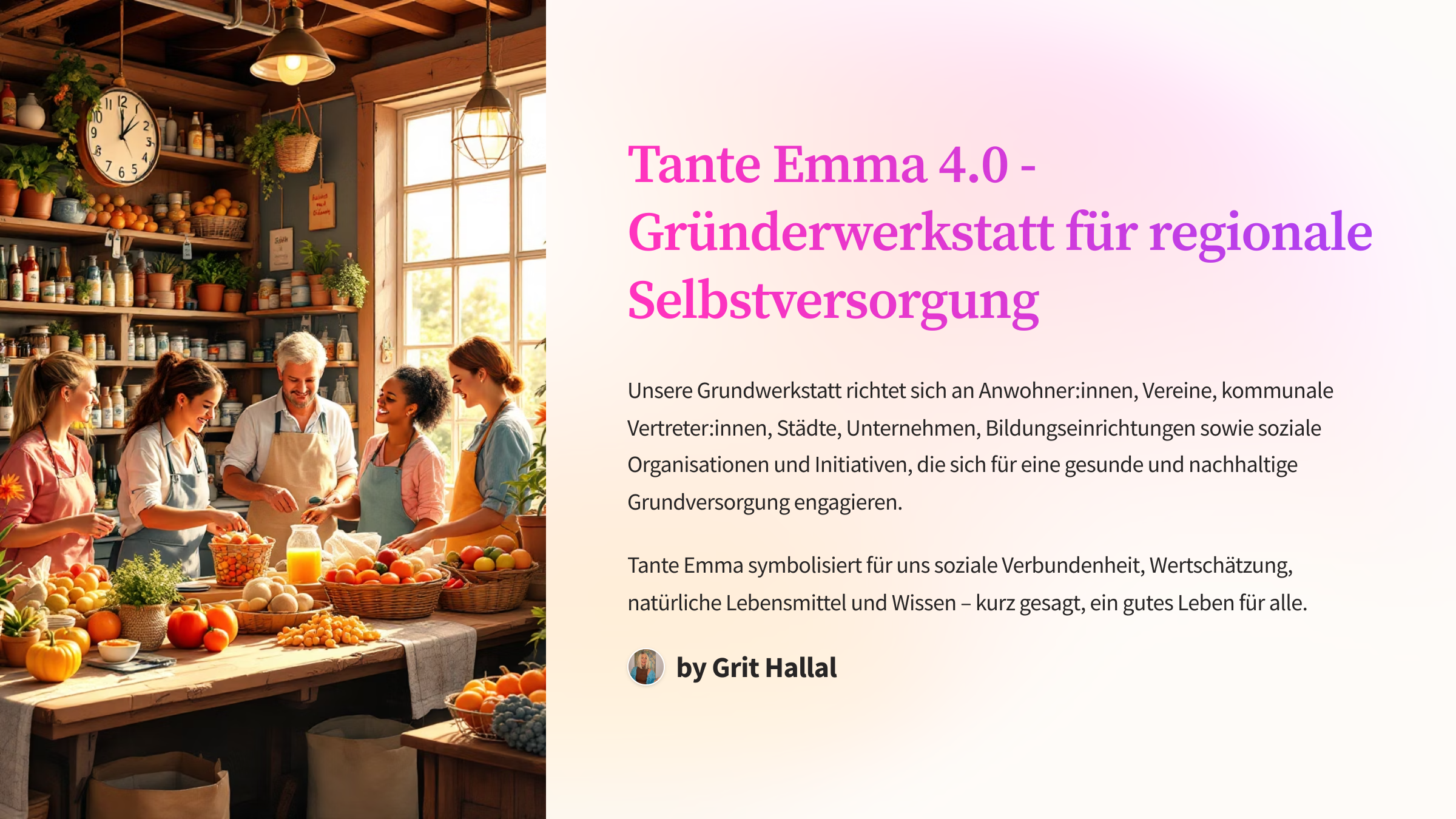 Gründerwerkstatt für regionale Selbstversorgung - Tante Emma 4.0